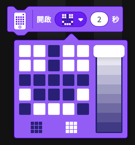 該程式區塊(積木),主要用來控制器(頭磚)的螢幕顯示方式和內容。